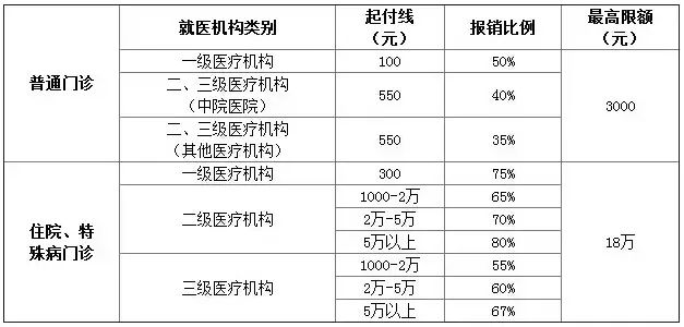 2、报销比例:采取分段计算、累加支付的办法,支付比例按医院级别分别计算;